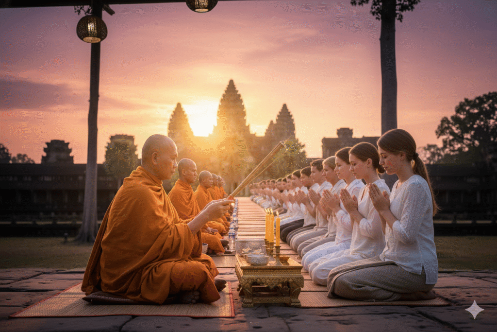 As the sun sets, witness the 400+ Monk Blessing — a rare and moving ceremony uniting monks from nearby pagodas in a traditional Buddhist ritual. The rhythmic chants and serene atmosphere create a powerful moment of reflection and gratitude.