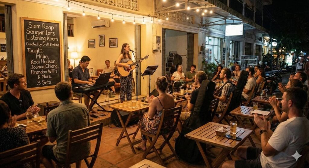 Join us for an immersive evening at the Siem Reap Songwriters Listening Room, curated by Brett Perkins. Discover three sets of original songs performed by Millie, Kodi Hudson, Joshua Chiang, Brandon Willis, and more talented artists. A night of creativity, connection, and live music at its most genuine.